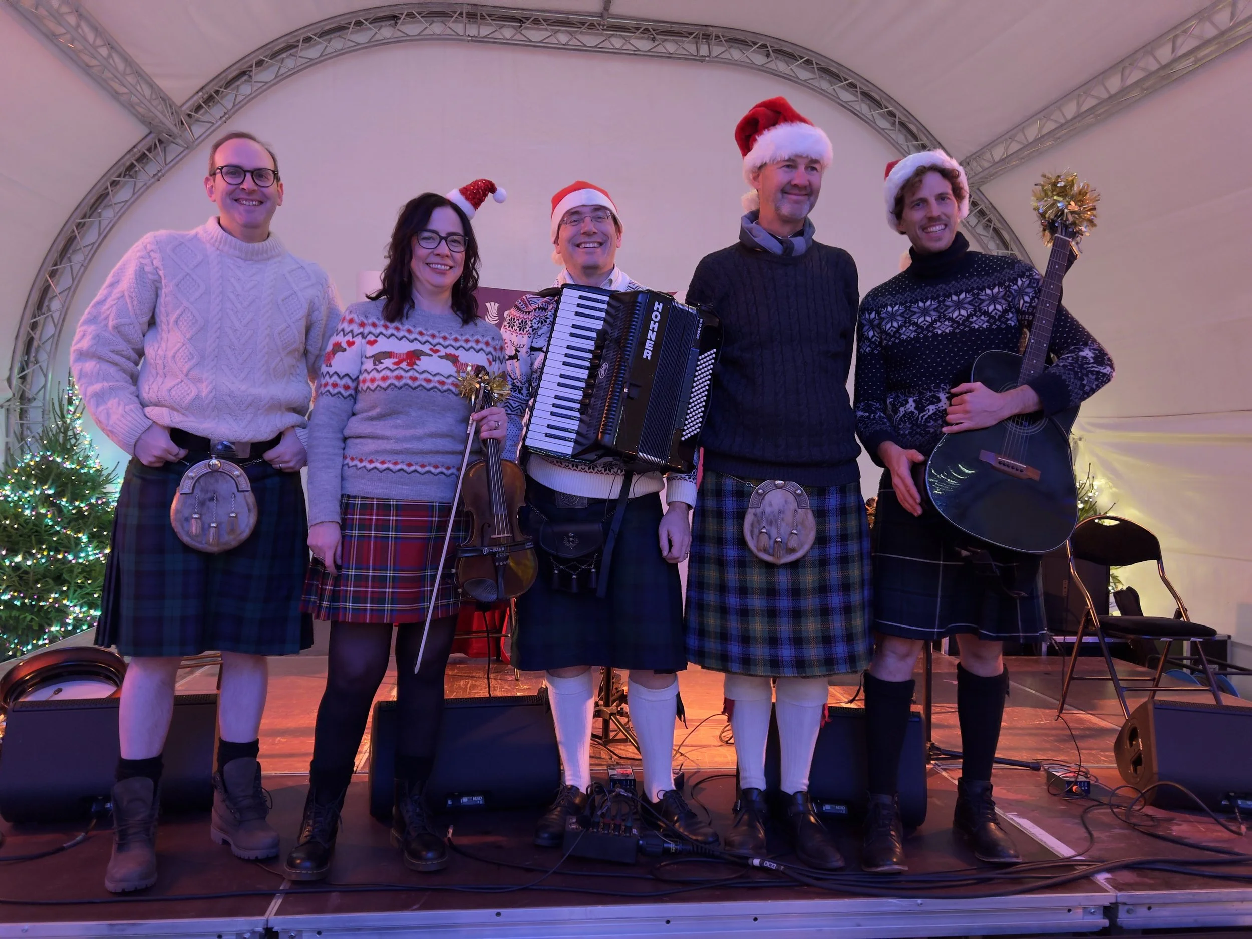 The Hoggies are a Brussels-based Scottish Ceilidh Band, established in 2011, by a group of enthusiastic musicians with a love of celtic music and an inspiration to make live ceilidh dances in Belgium available for everyone. The group currently includes a mix of different nationalities, with Scots/Irish, Belgian, Austrian and Polish musicians, who bring a diverse mix of musical backgrounds together, with a wide range of electric and acoustic instruments. We also take our dancers through every step of every dance with simple instructions, and will 'call' along with the music to make sure all of our dancers are comfortable and confident!